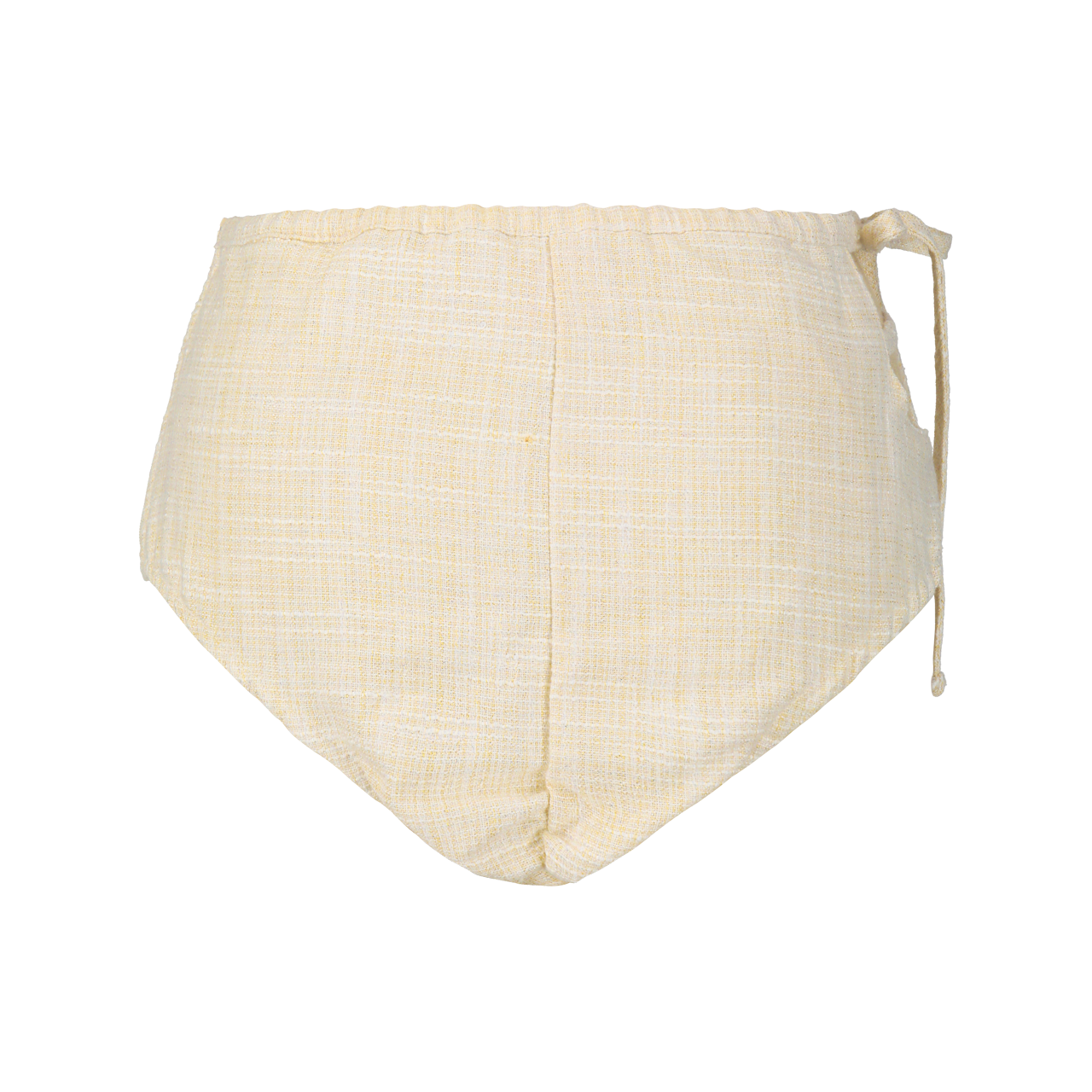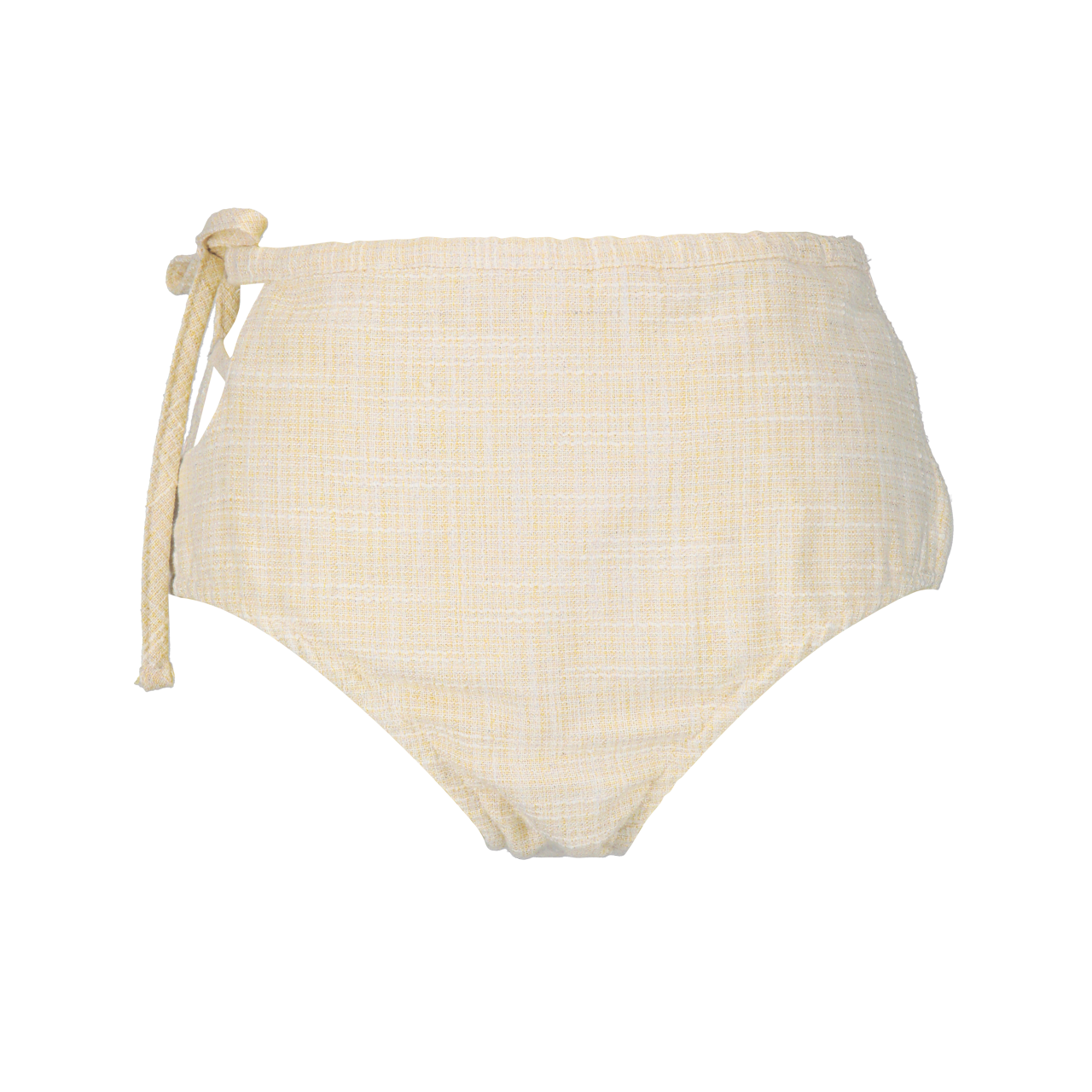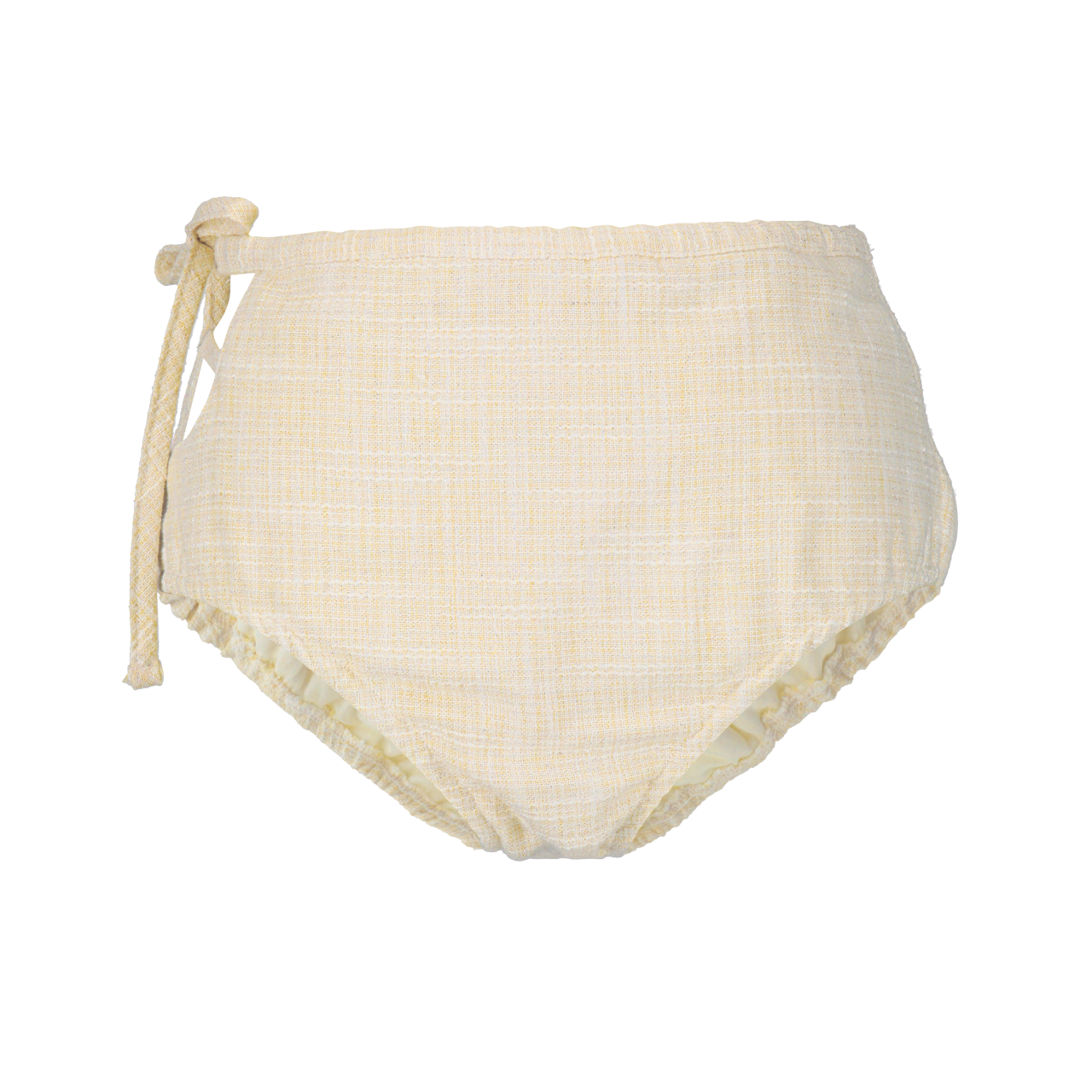 ボトムスはサイドにリボンモチーフをあしらい、片サイドのカットが軽やかさをプラス。